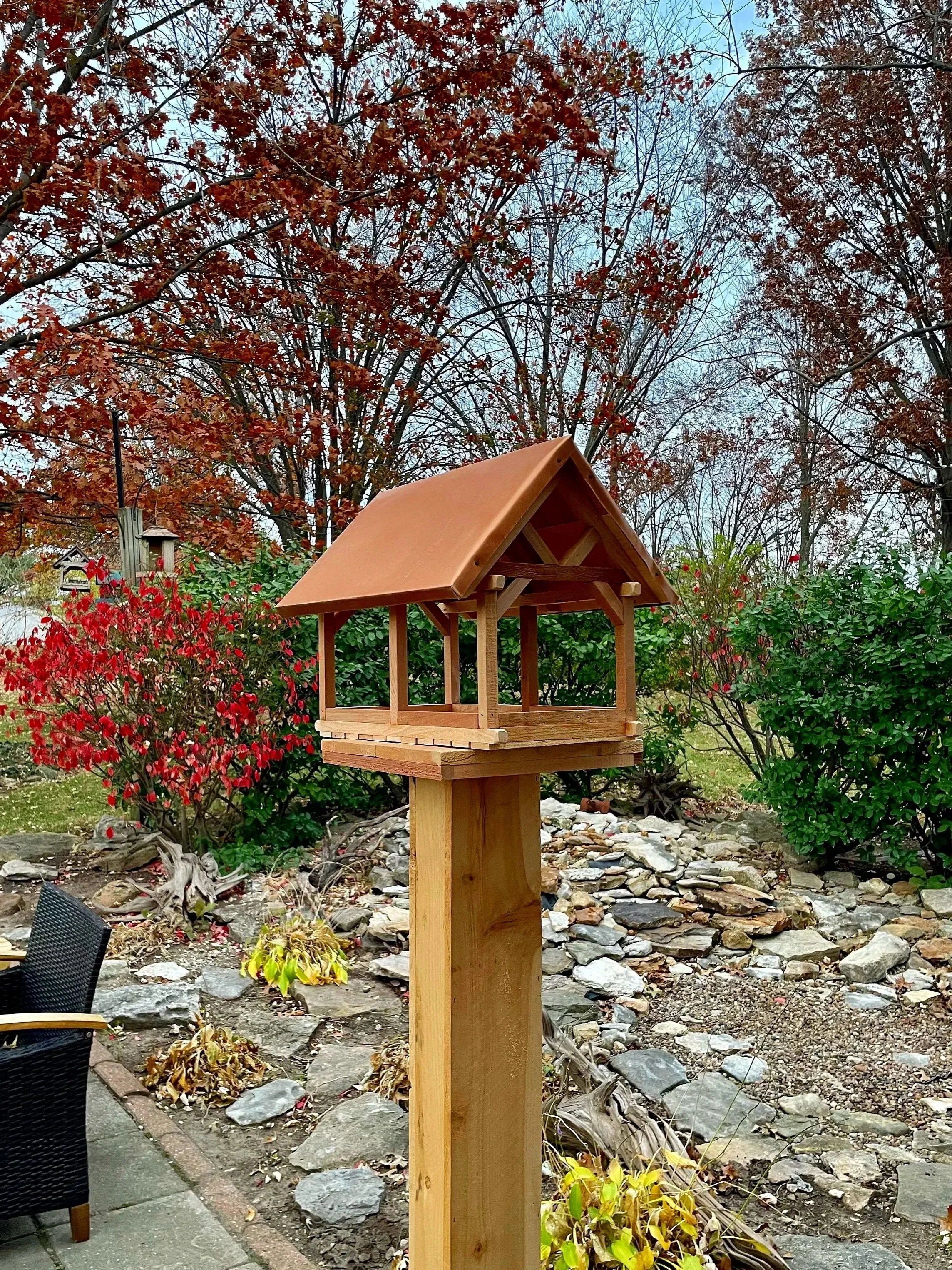 Timber Frame Bird Feeder with Copper colored Metal Roof