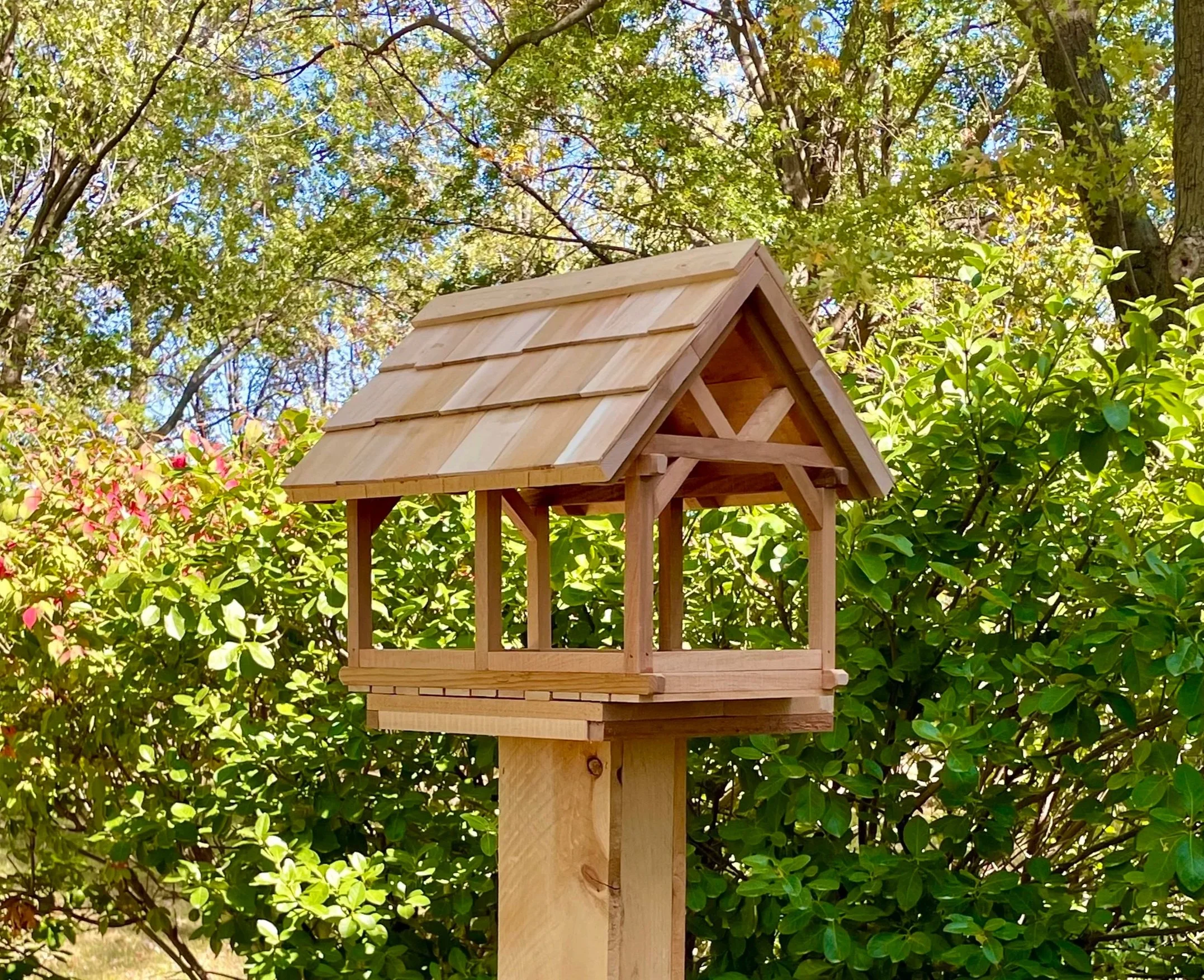 Timber Frame Bird Feeder with Shake Shingled Roof
